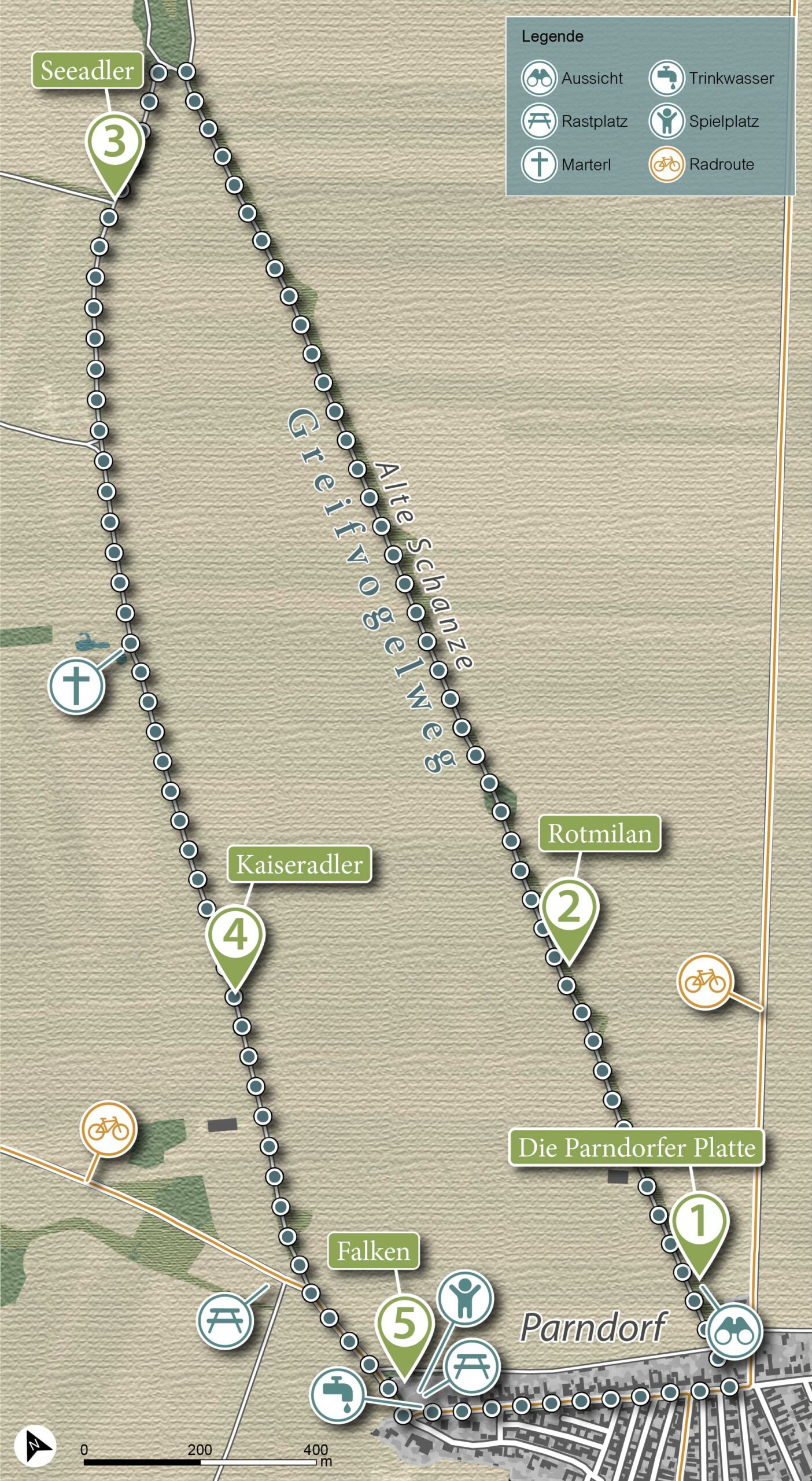 Begeben Sie sich auf einen Spazierweg mit vielen spannenden Informationen zu dem Thema Greifvögel im Europaschutzgebiet Parndorfer Platte – Heideboden!